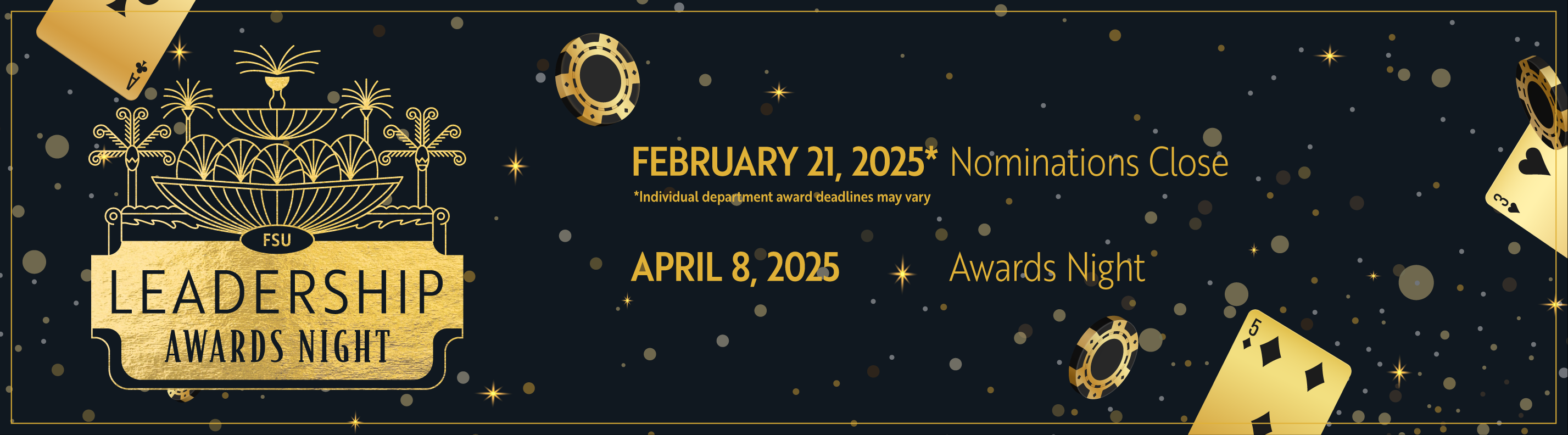 Leadership Awards Night is an annual recognition of students, faculty, staff, and organizations that have epitomized the definition of leadership by their exemplary contributions to the Florida State University community through achievement, service, or organizational leadership involvement.